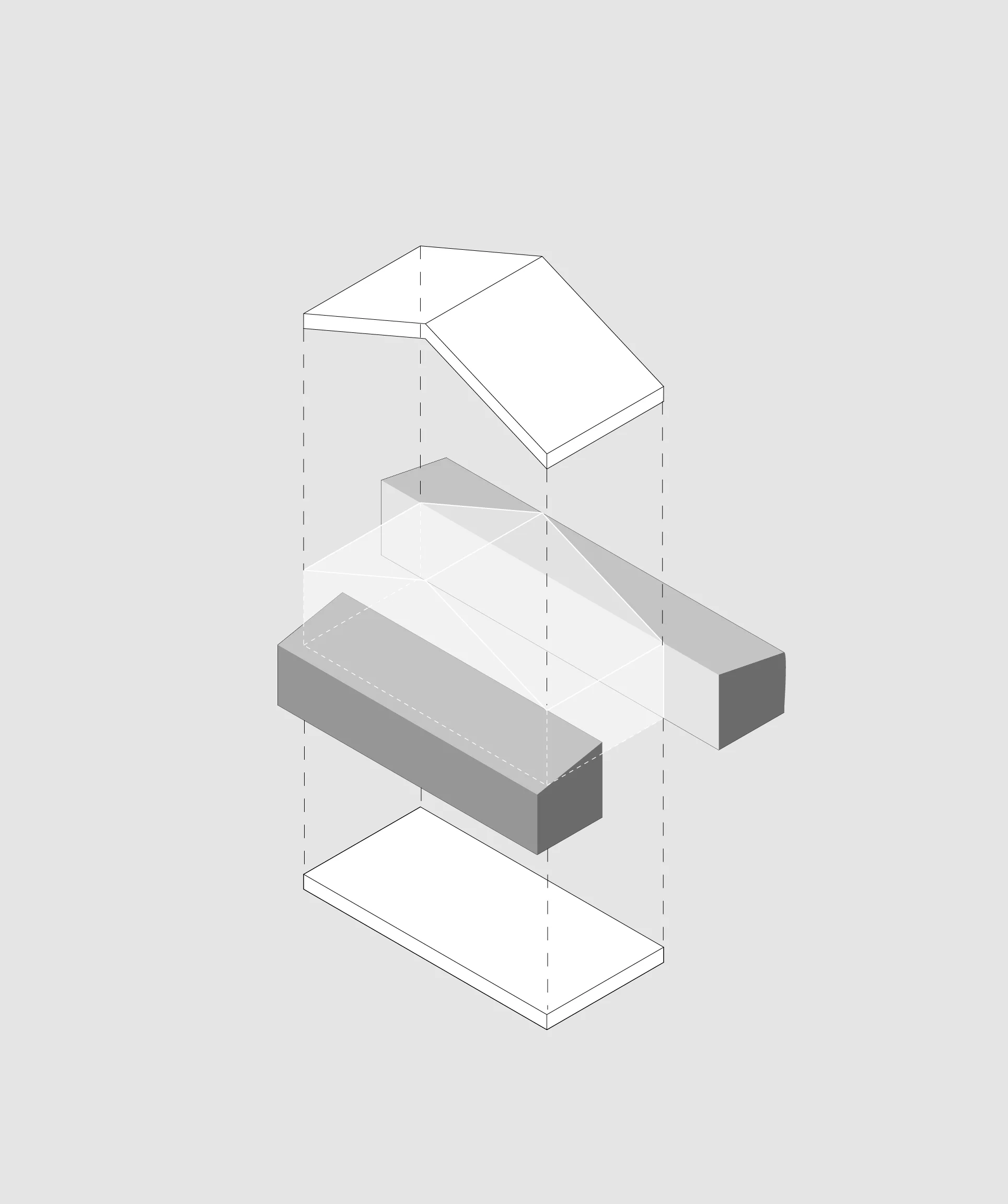 Week’nder opens and closes, its façades shifting from dark and opaque to light and transparent as you walk around it. The design and construction of this weekend getaway were driven by its island site: two prefabricated modules fit on trucks to come over by ferry, posts minimized foundation concrete, and bottle jacks eliminated the need for a crane. Containing the kitchen, three bedrooms, two bathrooms, laundry, and all of the infrastructure, these parallel modules set a datum line above which the gabled roof of a shared, site-built “dry space” rises like a tent.